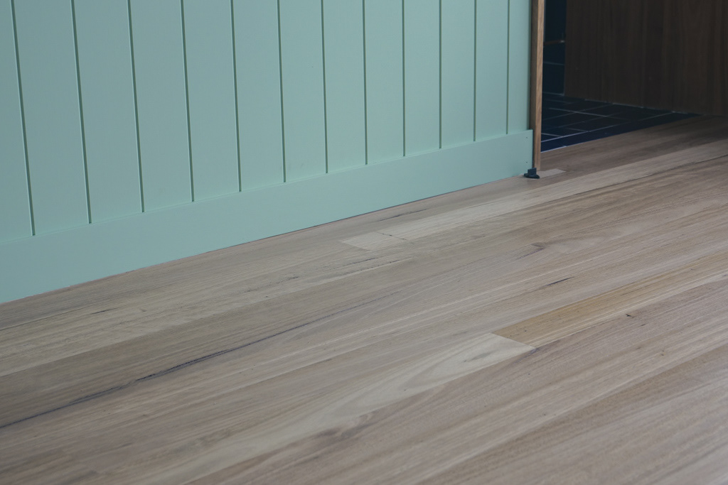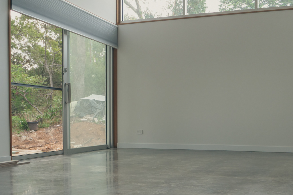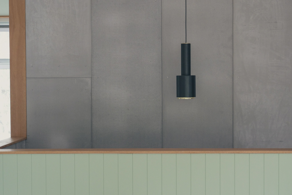Solid timber flooring, concrete floor finishing, and all custom interior linings, fixout, joinery and cabinetry completed by Che Golus Construction. This new residential dwelling heroes blackbutt hardwood timber and bespoke details within contemporary light-filled rooms. A central custom timber staircase, cement board panelling and handcrafted handrail marks the crossover between the two levels. Each room features delightful details, from window reveals and door jambs crafted from hardwood, to a custom rolling barn door adjoining the ensuite. The architectural vision of this cheerful home is realised through dedication to the finest detail.